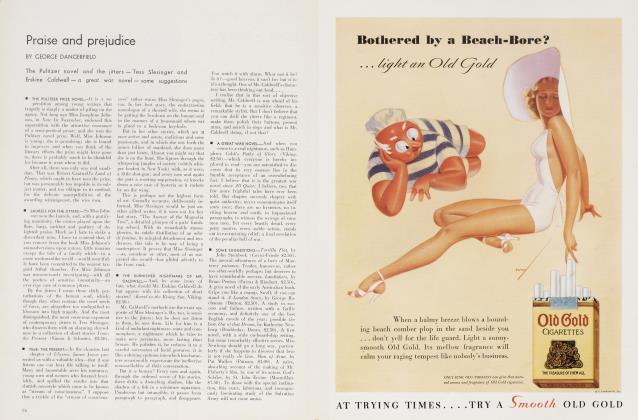 ■ WAR VERSUS FICTION.—I was sitting down to write a peaceable little eulogy of Thomas Wolfe, when the news came through that our amiable Herr Hitler had put up the Versailles shutters with an iron clang. The reverberations of this sinister deed are, at the moment of writing, creating a good deal of well-deserved vertigo among the chancelleries of Europe and the corridors of Washington: but it is also an occasion upon which, I believe, the critic of literature may be allowed to give vent to his own particular lamentation. For the last two years fiction, and particularly American fiction, has begun to look on the bright side of things: and fiction, after all, profoundly reflects the contemporary mind. Gone are the days when our more literate novelists counted, with fantastical fingers, the maggots which crawled in and out of the human psyche, gone are the days when they were grimly gallant—dear God, how grim and how gallant—about being damned; gone, but for Herr Hitler, gone for ever.