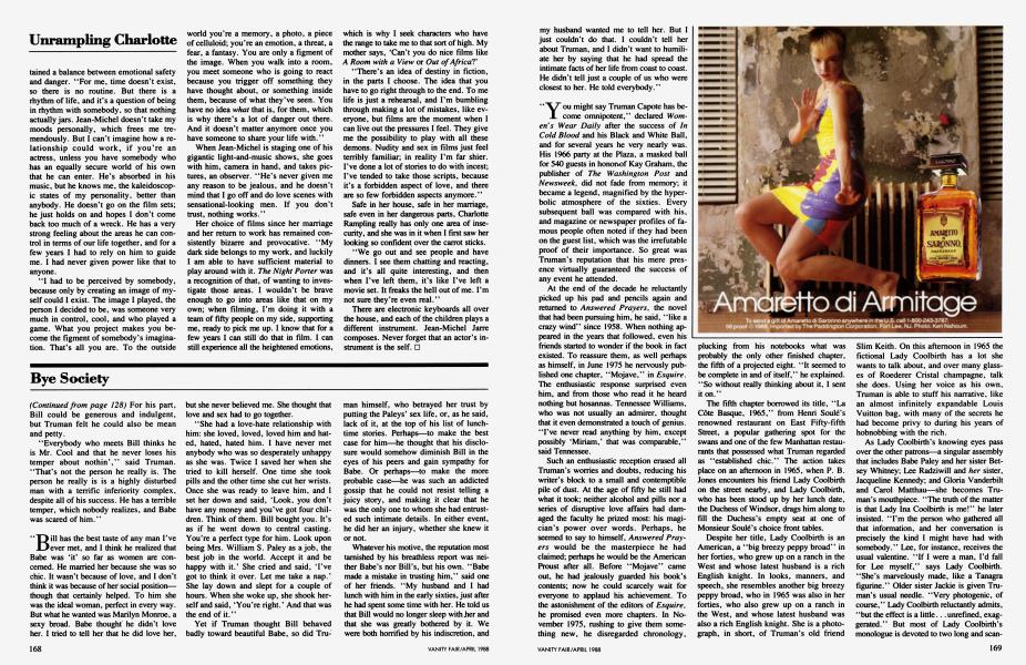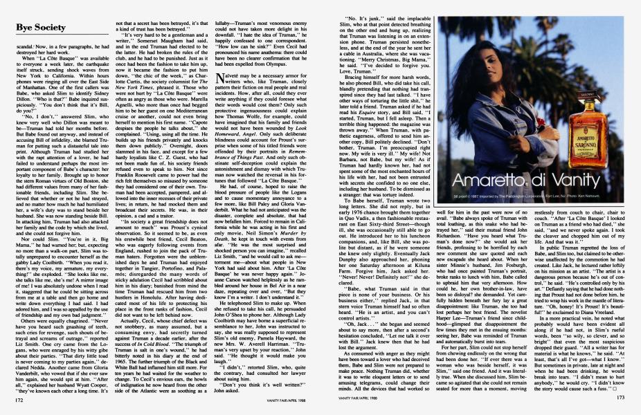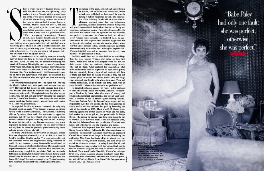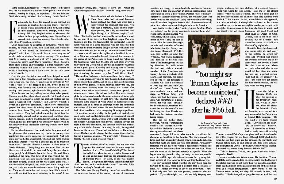 Sign In Not a Subscriber?Join NowTruman Capote was the darling of an inner circle he called his swans—Babe Paley, Slim Keith, Lee Radziwill, C. Z. Guest, Gloria Guinness, Marella Agnelli. He was their baby wizard, their bitchy sister, their father confessor. They told him who had slept between the Porthault sheets and where all the bodies were buried. The day he published a fraction of what he had learned in their company in "La Côte Basque, 1965," he created a new art form: social suicide. Here, an extract from GERALD CLARKE's long-awaited biography, due next month from Simon and Schuster