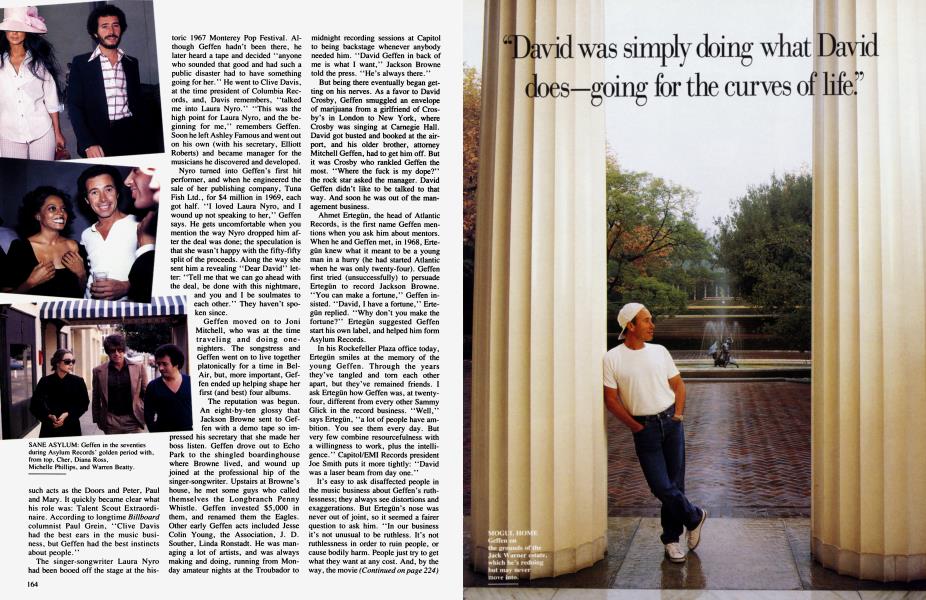 It's easy to ask disaffected people in the music business about Geffen's ruthlessness; they always see distortions and exaggerations. But Ertegun's nose was never out of joint, so it seemed a fairer question to ask him. "In our business it's not unusual to be ruthless. It's not ruthlessness in order to min people, or cause bodily harm. People just try to get what they want at any cost. And, by the way, the movie (Continued from page 164) business is the same. And Wall Street is the same. And Detroit is the same."