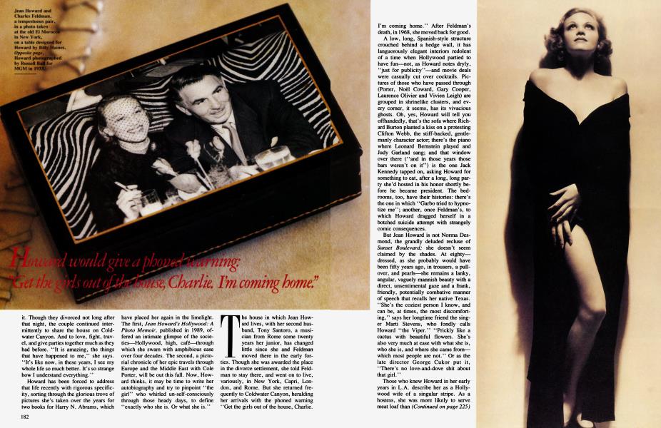 Sign In Not a Subscriber?Join NowThe critical acclaim of her recent photographic memoirs has brought the stylish world of Jean Howard— the feistiest femme fatale of Hollywood's golden era—back into focus. Louis B. Mayer loved her. Garbo was a pal. And everyone from Noël Coward to Jack Kennedy drifted through her tempestuous life with superagent Charlie Feldman. BEN BRANTLEY reports
