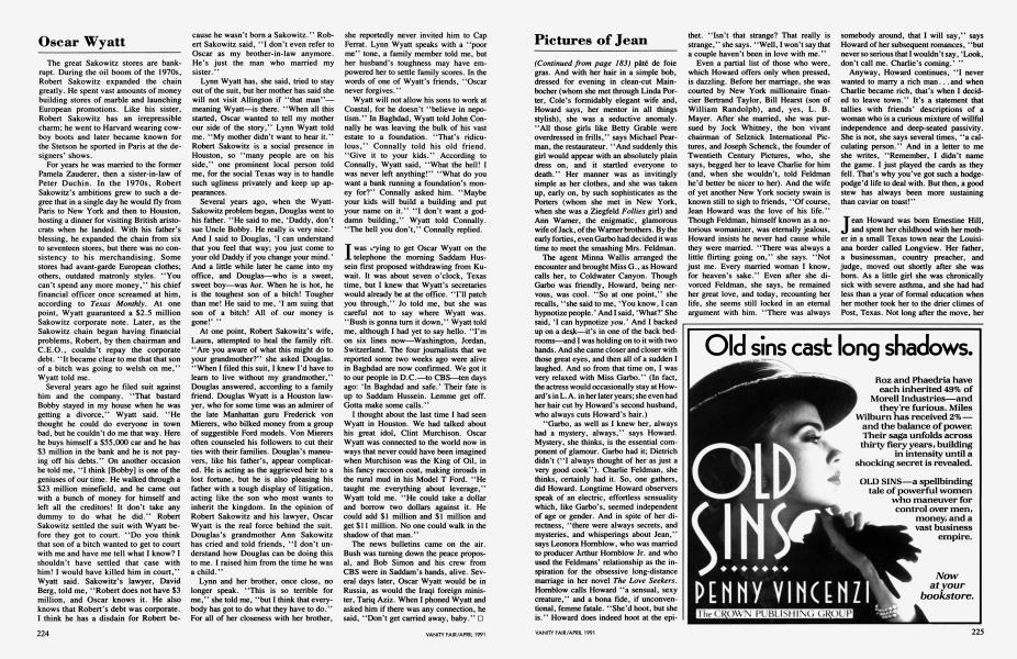 April 1991 Ben Brantley Eric BomanThe night she thought she'd killed her husband, nearly a half-century ago, Jean Howard was wearing a new white strapless dress and doubtless looking every inch the woman whom, local legend had it, MGM mogul Louis B, Mayer had once attempted suicide over. As the wife of Charles K. Feldman, the dapper head of Hollywood's powerful Famous Artists agency and the man celebrated for pioneering the "package deal'' for independent movie stars, she was hostess, as usual, to a shimmering assortment of film-industry denizens (the James Masons, William Holden) at her Beverly Hills home, and the evening seemed, as usual, a success. But she'd danced twice that night with the same, good-looking man, and when the party was over, Charlie Feldman was, as usual, crazy jealous. When he started to hit her, in her bedroom, she reached for a gold cigarette box— the long kind, she remembers today, that could hold four packs—closed her eyes, and swung. When she opened her eyes, there was blood on her dress, blood on the walls, and her husband had fallen backward—dead, she thought. She called Feldman's doctor, crouched on the roof of the garage until he arrived, then drove to a friend's house, where she hid for several days. When she next spoke to her husband, who was very much alive and desperate to get her back, she said, "Something awful will happen one day, Charlie. Either you'll kill me, or I'll kill you.''