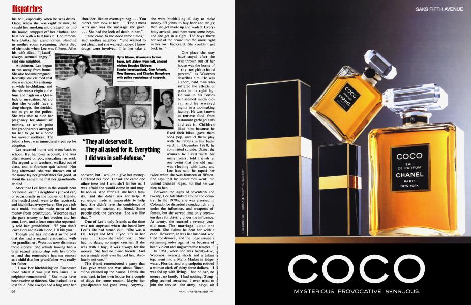 Aileen Wuornos might once have had all you need in this life, but when police finally tracked her down to the Last Resort in January, she had only her purse, a tan suitcase, and her black temper. She was thirty-four. She had less than twenty dollars. Her twenty-eight-year-old lover, Tyria Moore, had fled. Aileen Wuornos was a rough-skinned blonde on the lam and the prime suspect, along with Moore, in the serial killings of as many as ten middle-aged men in north-central Florida.