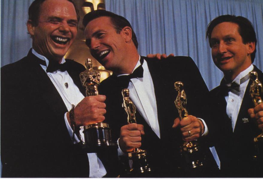 KEVIN'S SEVEN Costner with screenwnter Michael Blake and co-producer Jim Wilson at the 1991 Academy Awards, when Dances with Wolves took seven Oscars.