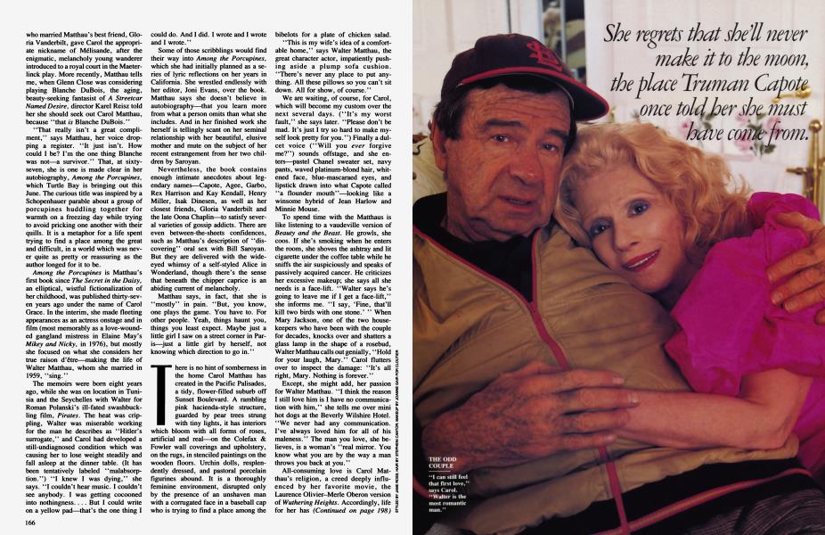 The roller-coaster life of Carol Matthau—hard-luck waif turned cafe-society debutante turned Hollywood wife (of Walter)— is straight out of a fairy tale. Or maybe a novel. The bewitching muse of William Saroyan, James Agee, Kenneth Tynan, and Truman Capote, who based Holly Golightly on her, she's now writing her own story in her memoirs, Among the Porcupines. BEN BRANTLEY reports