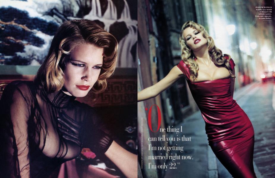 January 1993 Bob Colacello Helmut Newton Marina SchianoThe burning question: Will Claudia Schiffer, the world's most expensive model, marry Prince Albert of Monaco, the world's most elusive bachelor? Ever since the prince and the show girl were photographed together at the main events of the Monegasque social season, the Grand Prix Formula One race in May and the Red Cross Ball in August, fashion houses, jet-set salons, and tabloid pressrooms from Munich to Manhattan have been rife with speculation: Can the girl who doesn't like to take her top off in front of the other models backstage at fashion shows find true happiness with a boy who has a knack for getting himself photographed beside topless bimbos on speeding pleasure boats? Is the radiantly beautiful and surprisingly wholesome lawyer's daughter from Rheinberg, Germany, who made more than $6 million last year posing as a sex kitten for clients such as Guess?, Revlon, and Chanel, but doesn't drink, smoke, or stay out after midnight, the long-awaited answer to Prince Rainier's prayers? Will "the new Brigitte Bardot''—a comparison Schiffer is tired of—restore the scandal-ridden Grimaldis and the mini-nation they rule to a state of Grace ?