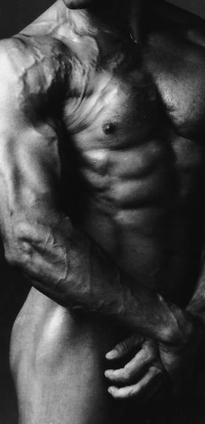 He leaned forward now, allowing me to prod tentatively at his triceps. "This is interesting," he said. "Look at this one here." He pointed at a pulsing, three-dimensional vein running the length of his right arm like a violet-colored snake. "Oooh," I said. He smiled, pleased. "Isn't that weird? I started to get it in Rambo, and then in Cliffhanger it really came up big. Matter of fact, look at this." He raised his forearm—the size and shape of a bowling pin—and began to tense it, causing it to expand and all its sinews to bulge. "If that gets any bigger," I said, "it'll explode."