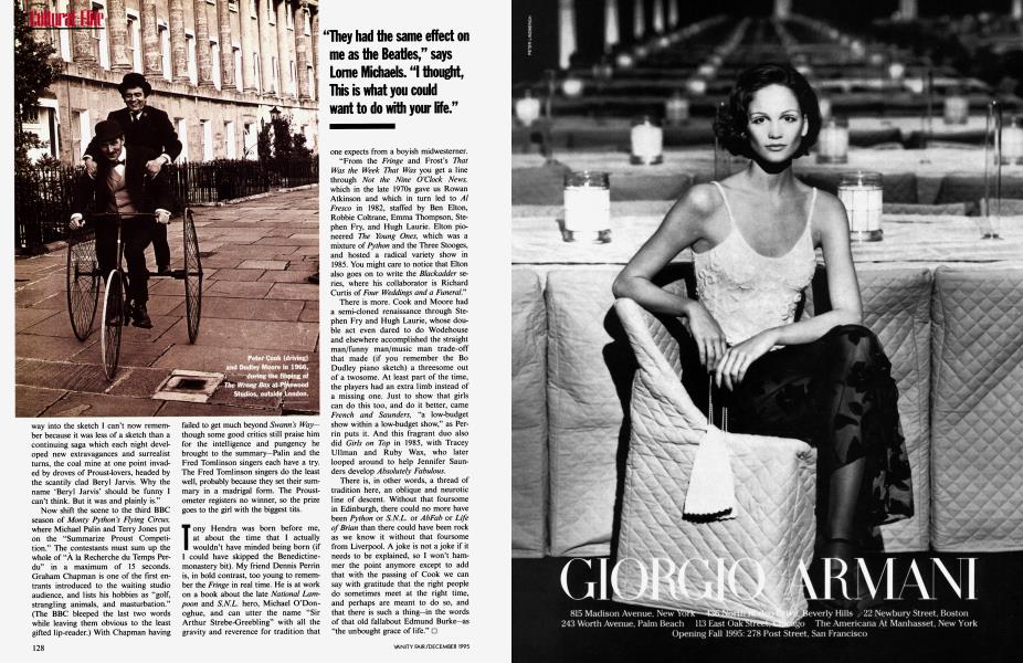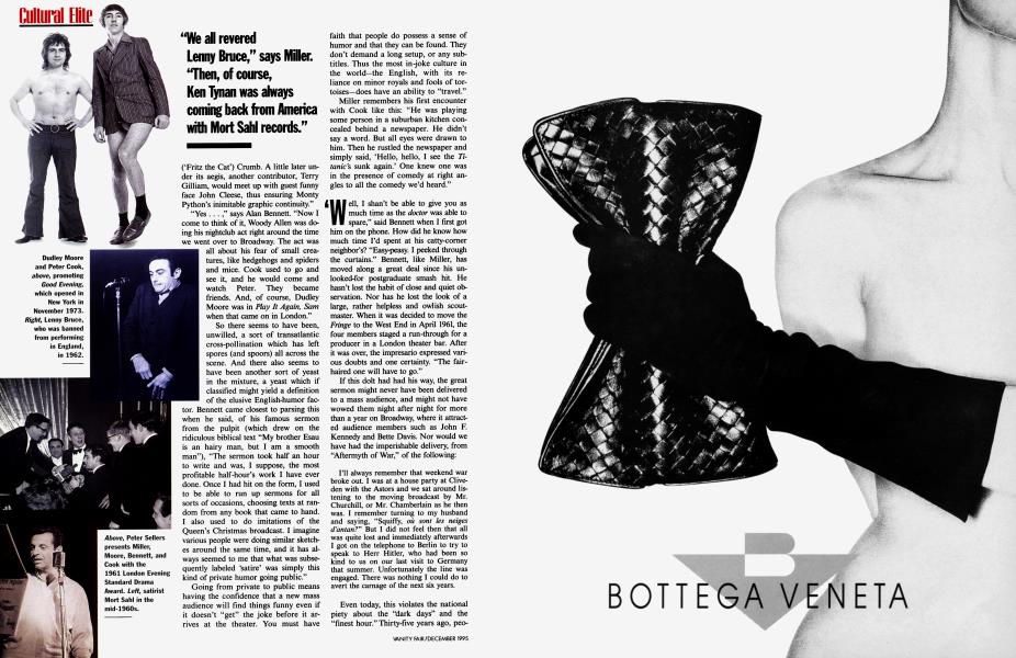 December 1995 Christopher HitchensIn 1960, four young Englishmen went Beyond the Fringe—and beyond comedy as it then existed. Their lunatic legacy stretches from Saturday Night Live to Absolutely Fabulous and from John Cleese to Martin Short