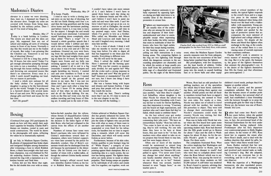 November 1996 Gay TaleseThe ringside epiphanies of longtime Daily News photographer Charles Hoff, preserved in a new book, The Fights, lead GAY TALESE to examine the visceral allure of boxing