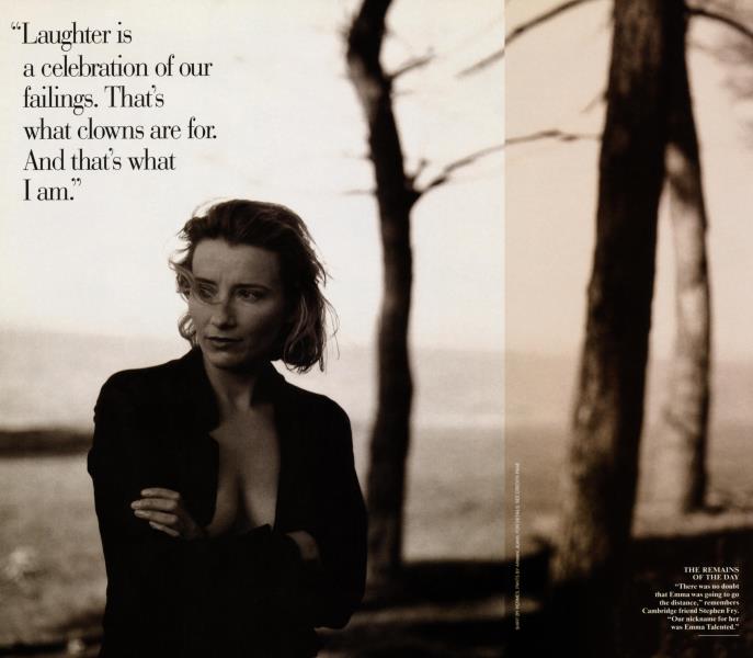 "She does make you laugh—that's a big plus," says James Ivory, who directed her and Hopkins in Howards End, for which she won the 1992 Academy Award for best actress, and The Remains of the Day, for which she was again nominated, the same year she received a nomination for best supporting actress in In the Name of the Father. "I've known several other actors who are very big stars who are in exactly the same situation that she was—they did not go to big English drama schools, and they started out as comics. One of them is Maggie Smith. Another is Hugh Grant. That's where they began. It gives them a kind of confidence.