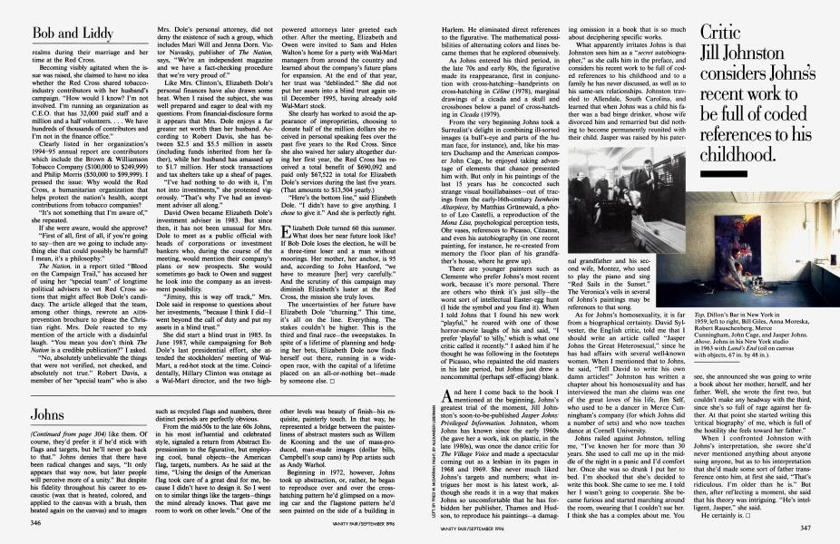September 1996 Edmund WhiteJasper Johns is suffering the fire of three ordeals: a major retrospective at MoMA, the renovation of a 100-acre Connecticut estate known as "Brideshead," and the publication of a biography he has fought against. EDMUND WHITE talks to the intensely private Zen master of American art