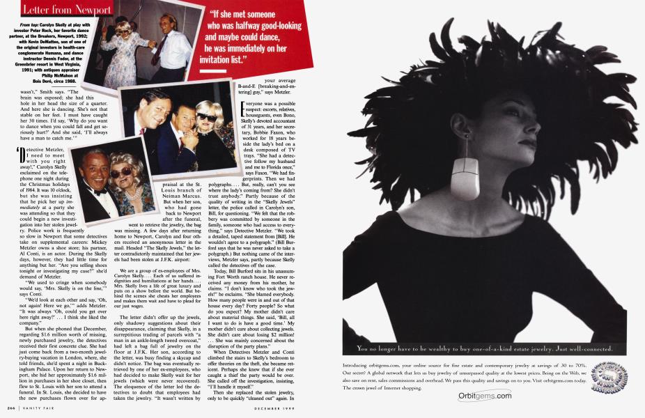 'Detective Metzler, need to meet with you right away!," Carolyn Skelly exclaimed on the telephone one night during the Christmas holidays of 1984. It was 10 o'clock, but she was insisting that he pick her up immediately at a party she was attending so that they could begin a new investigation into her stolen jewelry. Police work is frequently so slow in Newport that some detectives take on supplemental careers: Mickey Metzler owns a shoe store; his partner, A1 Conti, is an actor. During the Skelly days, however, they had little time for anything but her. "Are you selling shoes tonight or investigating my case?" she'd demand of Metzler.
