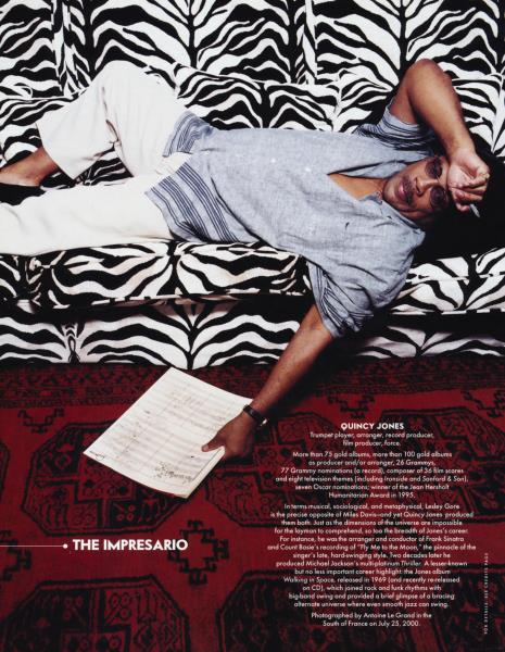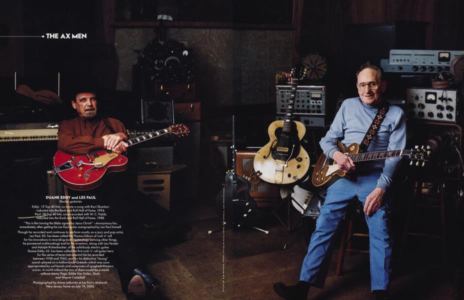 November 2000Combine Woodstocks One, Two, and Three with a night at the Metropolitan Opera, another night at the Village Vanguard, showtime at the Apollo, and a side trip to Nashville. Toss in a visit to Total Request Live. Now you’re getting close. The triple-platinum lineup on the next 59 pages is an ultimate Who’s Who of hit-makers and chart breakers, rock legends and folk heroes, rappers and divas, photographed by Annie Leibovitz, David Bailey, Julian Broad, William Claxton, Michel Comte, Todd Eberle, Timothy Greenfield-Sanders, Sam Jones, David LaChapelle, Mary Ellen Mark, Michael O'Neill, Herb Ritts, Bruce Weber, and more. With captions by Aliyah Baruchin, Bruce Handy, Michael Hogan, David Kamp, and Jim Windolf