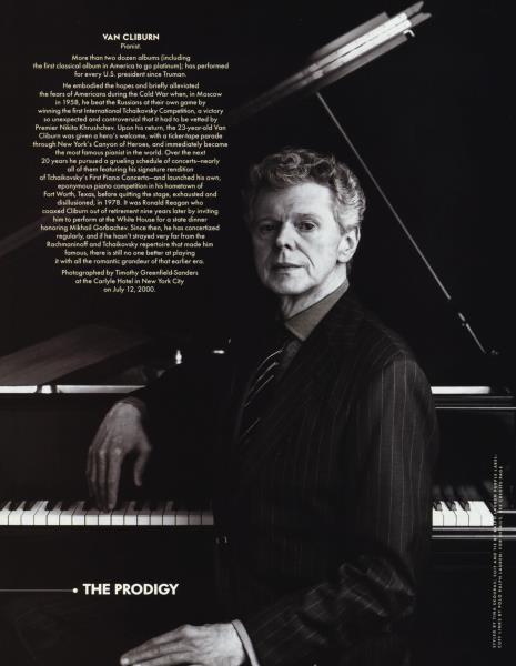 He embodied the hopes and briefly alleviated the fears of Americans during the Cold War when, in Moscow in 1958, he beat the Russians at their own game by winning the first International Tchaikovsky Competition, a victory so unexpected and controversial that it had to be vetted by Premier Nikita Khrushchev. Upon his return, the 23-year-old Van Cliburn was given a hero's welcome, with a ticker-tape parade through New York's Canyon of Heroes, and immediately became the most famous pianist in the world. Over the next 20 years he pursued a grueling schedule of concerts—nearly all of them featuring his signature rendition of Tchaikovsky's First Piano Concerto—and launched his own, eponymous piano competition in his hometown of Fort Worth, Texas, before quitting the stage, exhausted and disillusioned, in 1978. It was Ronald Reagan who coaxed Cliburn out of retirement nine years later by inviting him to perform at the White House for a state dinner honoring Mikhail Gorbachev. Since then, he has concertized regularly, and if he hasn't strayed very far from the Rachmaninoff and Tchaikovsky repertoire that made him famous, there is still no one better at playing it with all the romantic grandeur of that earlier era.