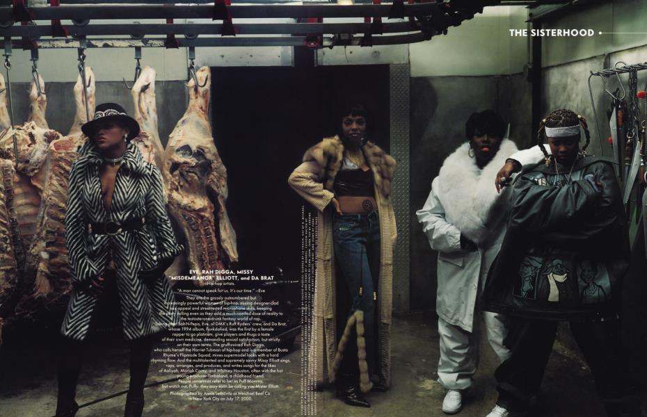 They are the grossly outnumbered but increasingly powerful wo.m»#r6f hip-hop, mixing designer-dad appeal and street-tested microphone skills, keeping the pdirty rolling even as they add a much-needed dose of reality to the testosterone-drunk fantasy world of rap. Taking after Salt-N-Pepa, Eve, of DMX's Ruff Ryders' crew, and Da Brat, whose 1994 album, Funkdafied, was the first by a female rapper to go platinum, give players and thugs a taste of their own medicine, demanding sexual satisfaction, but strictly on their own terms. The gruff-voiced Rah Digga, who calls herself the Harriet Tubman of hip-hop and is a member of Busta Rhyme's Flipmode Squad, mixes supermodel looks with a hard rhyming flow. And the multitalented and supremely savvy Missy Elliott sings, raps, arranges, and produces, and writes songs for the likes of Aaliyah, Mariah Carey, and Whitney Houston, often with the hot young producer Timbaland, a childhood friend.
