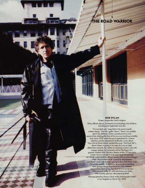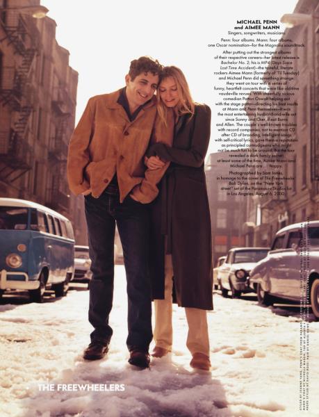 Photographed by Sam Jones, in homage to the cover of The Freewheelin' Bob Dylan, on the "New York street" set of the Paramount Studios lot in Los Angeles, August 6, 2000.