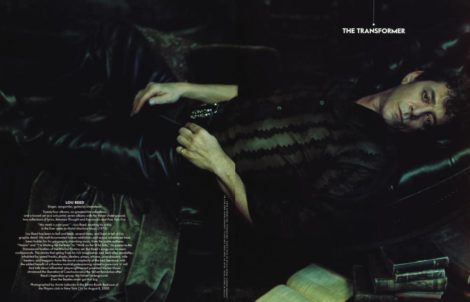 Lou Reed has been to hell and back, several times, and lived to tell of it in graphic detail. His well-documented former addictions and sexual adventures have been fodder for his gorgeously disturbing music, from the junkie anthems "Heroin" and "I'm Waiting for the Man" to "Walk on the Wild Side," his paean to the transsexual hustlers of the Warhol Factory set. But Reed's songs are no mere confessionals. The stories that spring from his rich imagination and dark-alley sensibility—inhabited by speed freaks, drunks, dealers, pimps, whores, cross-dressers, wife beaters, and beggars—have the moral complexity of the best literature, with the added benefit of a flawless musical underpinning rooted in pure rock 'n' roll. And talk about influential: playwright turned president Vaclav Havel christened the liberation of Czechoslovakia the Velvet Revolution after Reed's legendary group, the Velvet Underground.