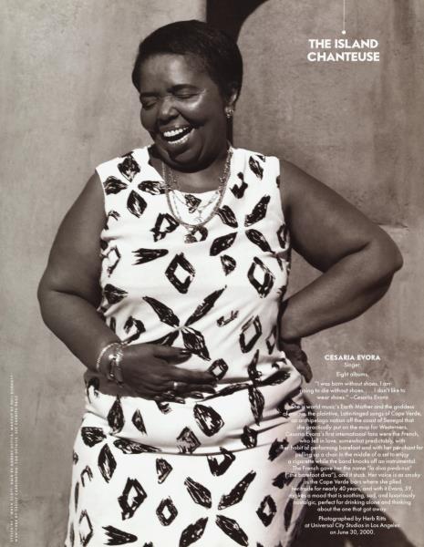 She is world music's Earth Mother and the goddess of morna, the plaintive, Latin-tinged songs of Cape Verde, an archipelago nation off the coast of Senegal that she practically put on the map for Westerners. Cesaria Evora's first international fans were the French, who fell in love, somewhat predictably, with her habit of performing barefoot and with her penchant for pulling up a chair in the middle of a set to enjoy pulling up a chair in the middle of a set to enjoy a cigarette while the band knocks off an instrumental. The French gave her the name "la diva pieds-nus" (the barefoot diva"), and it stuck. Her voice is as smoky as the Cape Verde bars where she plied trade for nearly 40 years, and with it Evora, 59, rocks a mood that is soothing, sad, and luxuriously nostalgic, perfect for drinking alone and thinking about the one that got away.