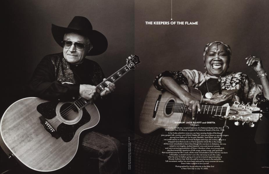 In her husky, plaintive voice you can hear varying shades of the blues/' jazz, gospel, folk, country—you'd think Odetta, 69, was one of those sui generis singers sprung from Delta soil. For his part, Ramblin' Jack Elliott, also 69, can yodel nearly as sweetly as Jimmie Rodgers and sings old cowboy songs in a chapped voice that sounds as if he'd spent his whole life on the range.