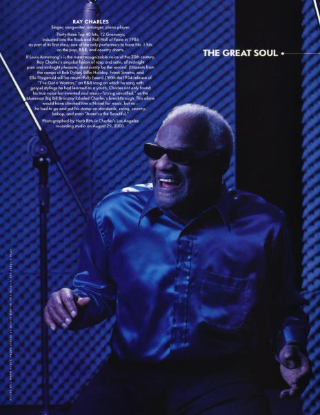 Photographed by Herb Ritts in Charles's Los Angeles recording studio on August 29, 2000.