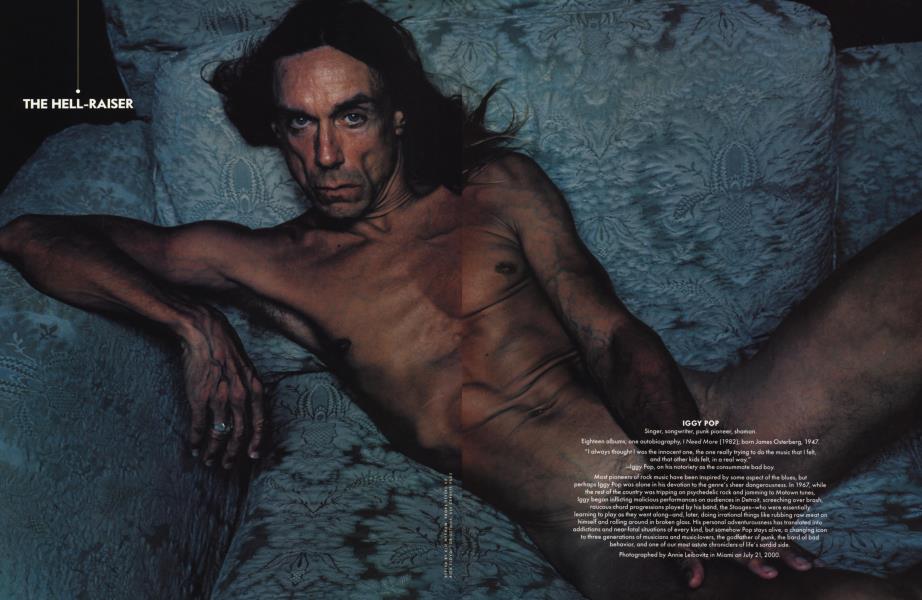 Iggy began inflicting malicious performances on audiences in Detroit, screeching over brash, raucous chord progressions played by his band, the Stooges—who were essentially learning to play as they went along—and, later, doing irrational things like rubbing raw meat on himself and rolling around in broken glass. His personal adventurousness has translated into addictions and near-fatal situations of every kind, but somehow Pop stays alive, a changing icon to three generations of musicians and music-lovers, the godfather of punk, the bard of bad behavior, and one of our most astute chroniclers of life's sordid side.