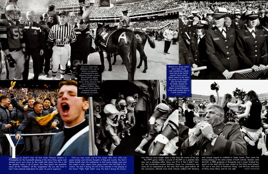 March 2000 ARRY FINKYou haven't even set foot inside Veterans Stadium in Philadelphia for the hundredth playing of the Army-Navy game and already you're worn down by the media blitz about how this is still the greatest rivalry in all of sports. You have heard vast quantities about all the "tradition," all the "pageantry." But you also know it hasn't had national implications for years. So you're suspicious.