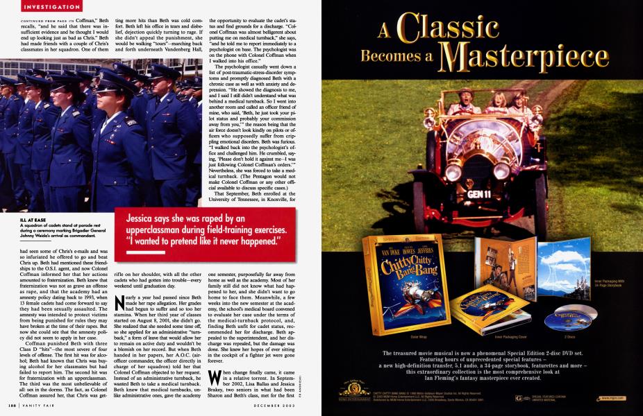 December 2003 Clara Bingham Harry BensonAfter Beth Davis told the U.S. Air Force Academy she'd been raped by another cadet, she was punished. But she and her classmates Lisa Ballas and Jessica Brakey, who'd also reported sexual assaults, decided to fight the system. The air force is reeling from what they exposed: a covert war against its women