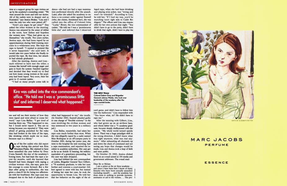Sign In Not a Subscriber?Join NowAfter Beth Davis told the U.S. Air Force Academy she'd been raped by another cadet, she was punished. But she and her classmates Lisa Ballas and Jessica Brakey, who'd also reported sexual assaults, decided to fight the system. The air force is reeling from what they exposed: a covert war against its women