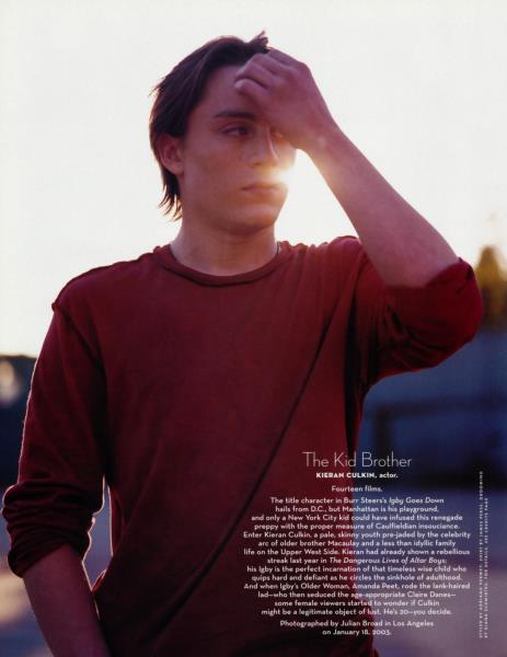 The title character in Burr Steerss lgby Goes Down hails from D.C., but Manhattan is his playground, and only a New York City kid could have infused this renegade preppy with the proper measure of Caulfieldian insouciance. Enter Kieran Culkin, a pale, skinny youth pre-jaded by the celebrity arc of older brother Macaulay and a less than idyllic family life on the Upper West Side. Kieran had already shown a rebellious streak last year in The Dangerous Lives of Altar Boys; his lgby is the perfect incarnation of that timeless wise child who quips hard and defiant as he circles the sinkhole of adulthood. And when lgby's Older Woman, Amanda Peet, rode the lank-haired lad—who then seduced the age-appropriate Claire Danes—some female viewers started to wonder if Culkin might be a legitimate object of lust. He's 20—you decide.