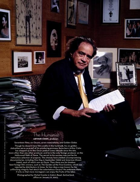 Though he doesn’t have film credits in the hundreds, his six golden statuettes serve as proof of his producing prowess. Swiss-born Arthur Cohn has stepped up to the Oscar podium every decade since the 60s, more often than any other producer, and he is the only foreign producer on the Hollywood Walk of Fame. The secret to his success may just be his meticulous selection of projects. The choices have yielded uncompromising documentaries, including One Day in September (1999) and American Dream (1990), each of which won an Oscar. Then there are his timeless best-foreign-film winners, such as The Garden of the Finzi-Continis, which was rejected by distributors 31 times. So how does a man known for his unflinching integrity feel about the ostentatious Oscars? He embraces them, if only so that more moviegoers can enjoy the fruits of his labor.