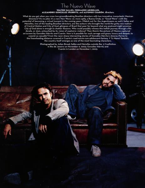 Photographed by Julian Broad; Salles and Meirelles outside Bar 3 Coelhinhos in Rio de Janeiro on November 6, 2003; Gonzalez Iñárritu and Cuarón in London on November 1, 2003.