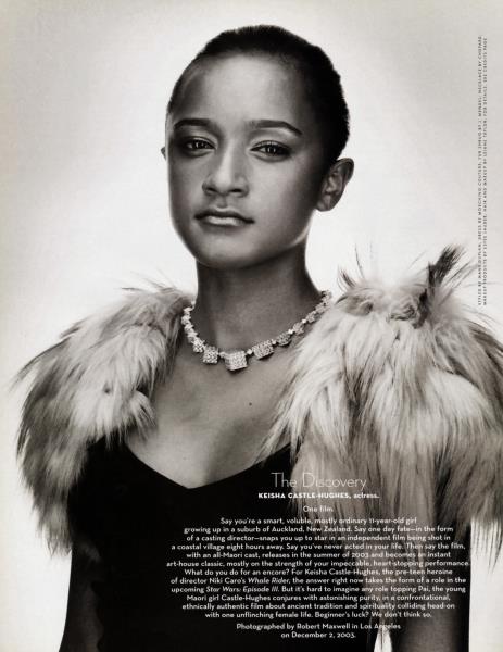 Say you’re a smart, voluble, mostly ordinary 11-year-old girl growing up in a suburb of Auckland, New Zealand. Say one day fate—in the form of a casting director—snaps you up to star in an independent film being shot in a coastal village eight hours away. Say you’ve never acted in your life. Then say the film, with an all-Maori cast, releases in the summer of 2003 and becomes an instant art-house classic, mostly on the strength of your impeccable, heart-stopping performance. What do you do for an encore? For Keisha Castle-Hughes, the pre-teen heroine of director Niki Caro’s Whale Rider, the answer right now takes the form of a role in the upcoming Star Wars: Episode III. But it’s hard to imagine any role topping Pai, the young Maori girl Castle-Hughes conjures with astonishing purity, in a confrontational, ethnically authentic film about ancient tradition and spirituality colliding head-on with one unflinching female life. Beginner’s luck? We don’t think so.