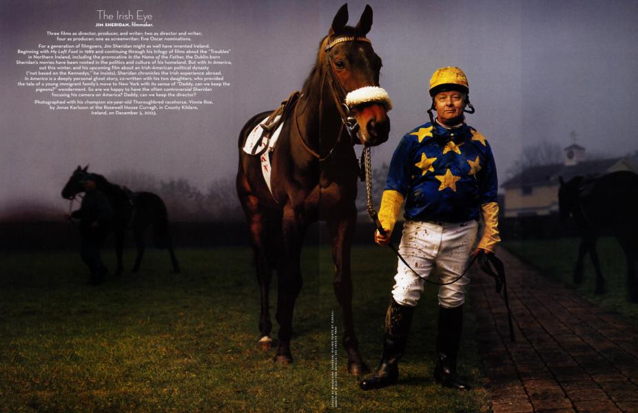 For a generation of filmgoers, Jim Sheridan might as well have invented Ireland. Beginning with My Left Foot in 1989 and continuing through his trilogy of films about the "Troubles” in Northern Ireland, including the provocative In the Name of the Father, the Dublin-born Sheridan’s movies have been rooted in the politics and culture of his homeland. But with In America, out this winter, and his upcoming film about an Irish-American political dynasty ("not based on the Kennedys,” he insists), Sheridan chronicles the Irish experience abroad. In America is a deeply personal ghost story, co-written with his two daughters, who provided the tale of a young immigrant family’s move to New York with its sense of "Daddy, can we keep the pigeons?” wonderment. So are we happy to have the often controversial Sheridan focusing his camera on America? Daddy, can we keep the director?