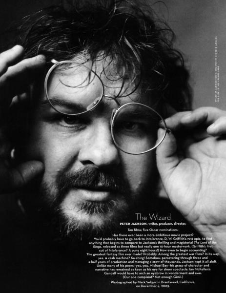 Has there ever been a more ambitious movie project? You'd probably have to go back to Intolerance, D. W. Griffith's 1916 epic, to find anything that begins to compare to Jackson's thrilling and magisterial The Lord of Rings, released as three films but really one 10-hour masterwork. (Griffith's first cut of Intolerance? A puny eight hours!) How even to begin accounting? The greatest fantasy film ever made? Probably. Among the greatest war films? In its way, yes. A cash machine? Ka-ching! Somehow, persevering through three and a half years of production and managing a crew of thousands, Jackson kept it all aloft. Unlike many of his peers—yes, you, Michael Bay—his grasp of character and narrative has remained as keen as his eye for sheer spectacle. Ian McKellen's Gandalf would have to arch an eyebrow in wonderment and awe. (Our one complaint? Not enough Gimli.)