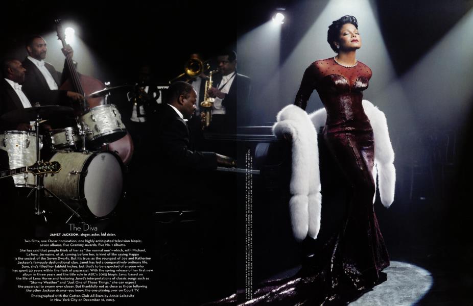 She has said that people think of her as “the normal one”—which, with Michael, LaToya, Jermaine, et al. coming before her, is kind of like saying Happy is the sexiest of the Seven Dwarfs. But it’s true: as the youngest of Joe and Katherine Jackson’s famously dysfunctional clan, Janet has led a comparatively ordinary life. Sure, she’s filled her tabloid inches, but that’s to be expected of anyone who has spent 30 years within the flash of paparazzi. With the spring release of her first new album in three years and the title role in ABC's 2005 biopic Lena, based on the life of Lena Horne and featuring Janet’s interpretations of classic songs such as "Stormy Weather" and “Just One of Those Things,” she can expect the paparazzi to swarm ever closer. But thankfully not as close as those following the other Jackson drama—you know, the one playing over on Court TV.