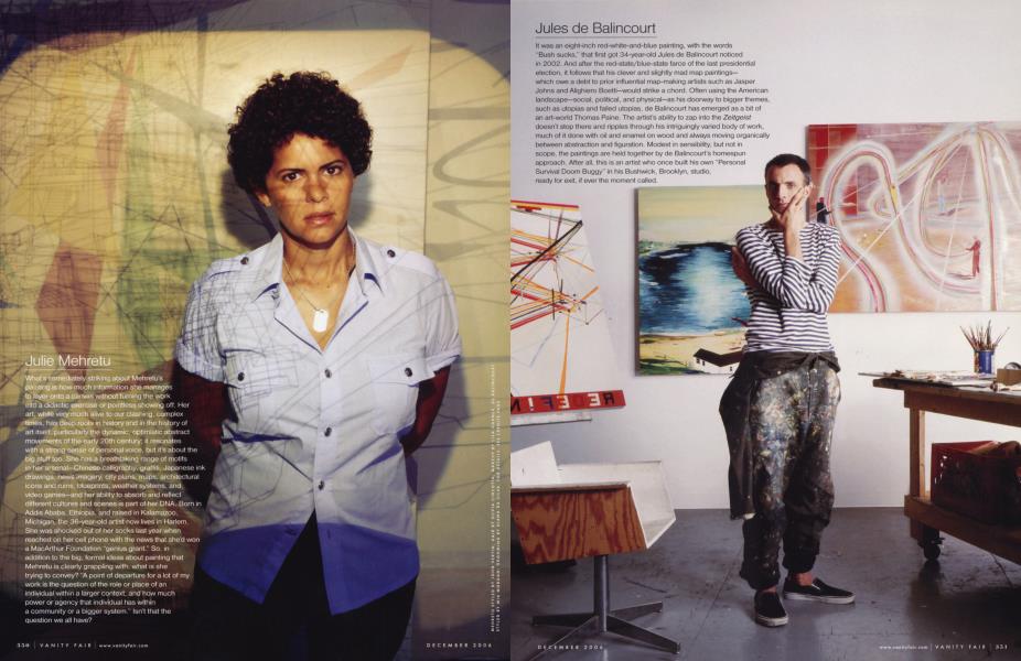 Sign In Not a Subscriber?Join NowAmid the hype and hustle of the New York art scene, eight young talents have steadily honed their visions— provoking, penetrating, and putting the world on notice. TODD EBERLE photographs this next wave of big-name artists, while INGRID SISCHY traces the paths they've come by: international, unpredictable, deeply individual