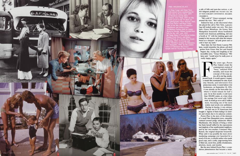 Sign In Not a Subscriber?Join NowFifty years ago, the novel Peyton Place shocked America with its tale of secrets, sex, and hypocrisy in a small New Hampshire town, becoming one of the best-selling dirty books ever, a hit movie, and TV's first prime-time soap. It brought fame and misfortune to Grace Metalious, the bawdy, rebellious housewife who wrote it, and outraged the citizens of Gilmanton—"the real Peyton Place." With a Metalious biopic in production, MICHAEL CALLAHAN charts the tumultuous celebrity, emotional flameout, and sordid death, at 39, of an unlikely cultural trailblazer