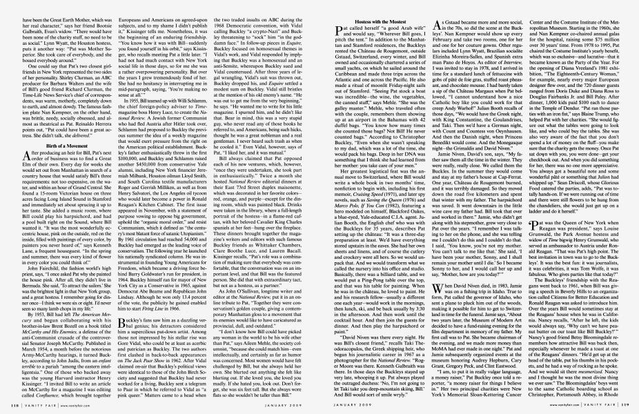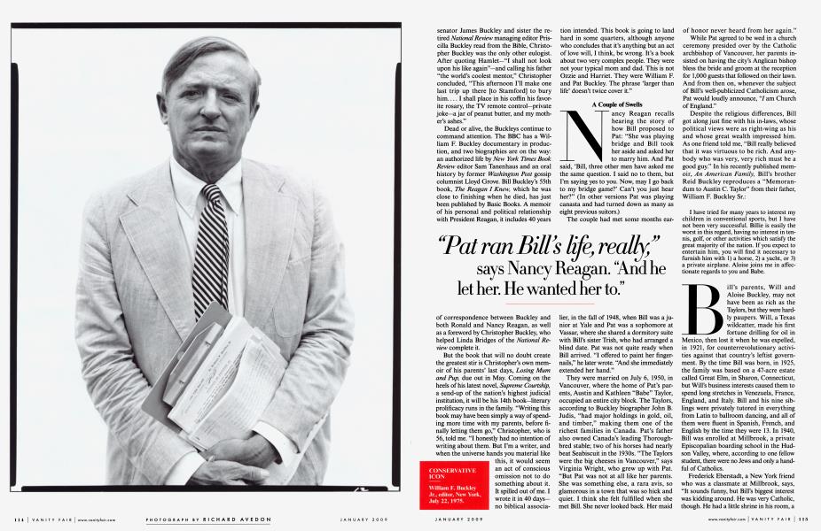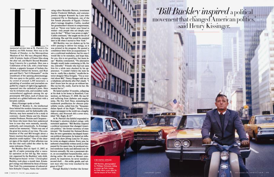 Sign In Not a Subscriber?Join NowThey called each other “Ducky.” And they died within months of each other, in April 2007 and February 2008, as if William F. Buckley Jr., the famously polysyllabic founder of the modern conservative movement (and of its literary flagship, the National Review), could not go on without Patricia, the equally opinionated social lioness he’d married 57 years earlier. Talking to Nancy Reagan, Henry Kissinger, and the Buckleys’ only child, Christopher, who has been making his own headlines, BOB COLACELLO explores the complex connections—political, intellectual, and romantic—behind the ineffably stylish world of Pat and Bill