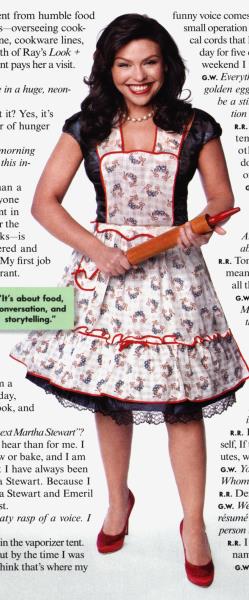 R.R. I consider myself nothing more than a very good waitress. I think that everyone should have to wait tables at some point in their life. I think that what I do—whether the shows, the magazine, or the cookbooks—is to try and listen for what's being ordered and then deliver it. I grew up in restaurants. My first job was as a dishwasher in my mom's restaurant.