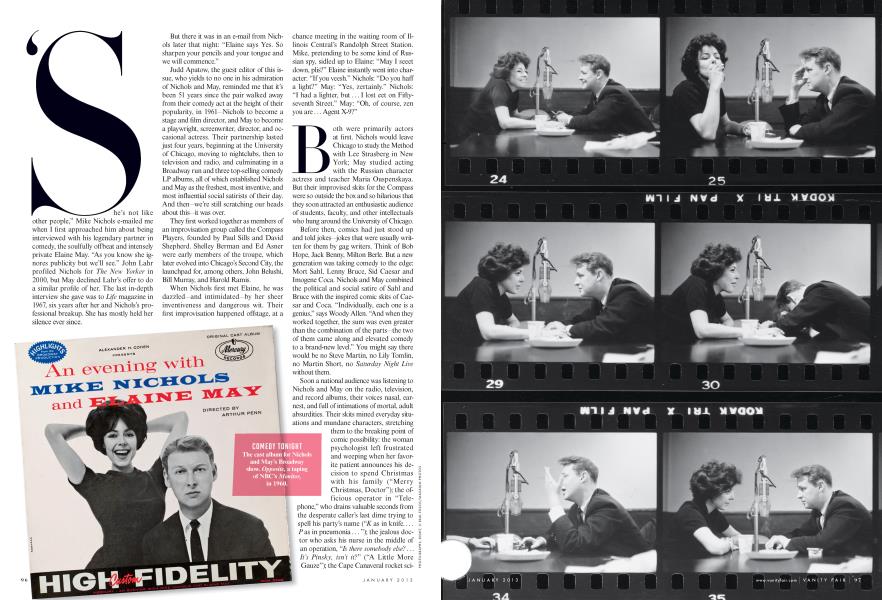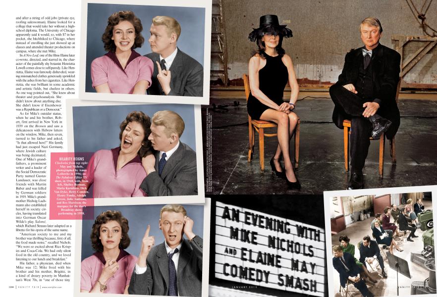Sign In Not a Subscriber?Join NowTwo months after Mike Nichols and Elaine May arrived in New York, in 1957, their improv act was the toast of the town. Four smash-hit years later, nationally famous, they simply stopped. Half a century has passed, but as SAM KASHNER discovers, in an unprecedented joint interview, the celebrated director and screenwriter still crack each other up