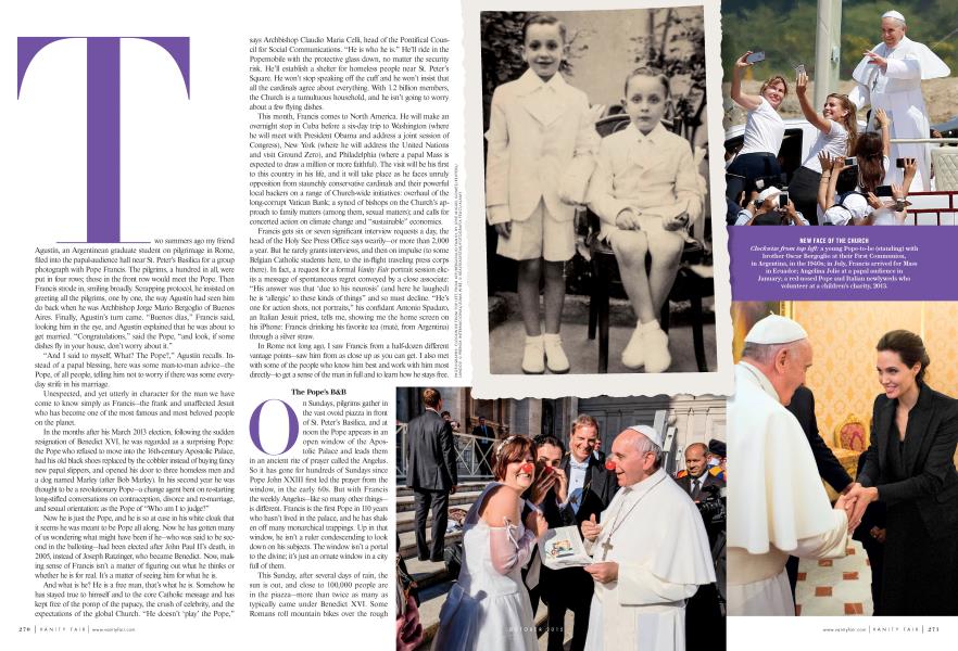 Sign In Not a Subscriber?Join NowHe doesn't behave like any Pontiff in history. He challenges centuries-old Catholic certainties, and reaches out to those once shunned by the Church. And, in less than three years, he has made people ask: Why weren't recent Popes more like him? As Pope Francis arrives in the U.S.—to speak before Congress, visit Ground Zero, and address the U.N.—his inner circle talks to PAUL ELIE about why he is so different, so compelling, and so beloved
