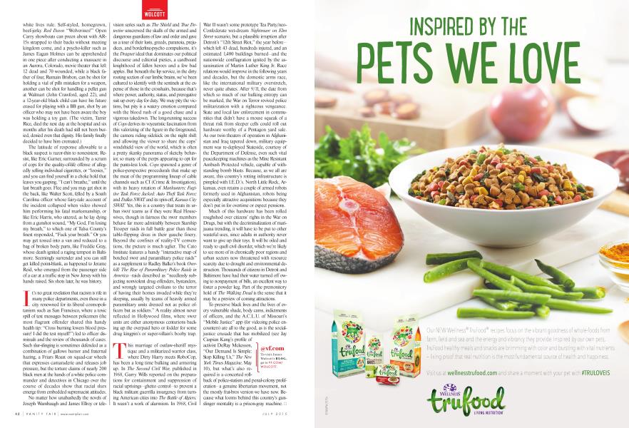 Racism hasn’t been the only force behind the increasing slaughter of black men (and boys) by the police. There’s also a long-ingrained culture that glorifies law enforcement—Dirty Harry, Cops, Dallas SWAT, etc.—and now, thanks to the War on Terror, a domestic glut of Pentagon hardware