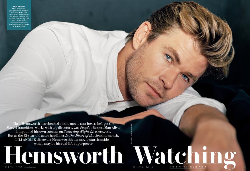 Sign In Not a Subscriber?Join NowChris Hemsworth has checked all the movie-star boxes: he's got the Marvel franchises, works with top directors, was People's Sexiest Man Alive, lampooned his own success on Saturday Night Live, etc., etc. But as the 32-year-old actor headlines In the Heart of the Sea this month, LILI ANOLIK discovers Hemsworth's un-movie-starrish side— which may be his real-life superpower