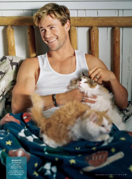 Branagh did, and the rest is Hollywood history or, I guess, Norse mythology. (Three fun facts. One: The Cabin in the Woods was released in 2012 but filmed in 2009, and it wasn't until 2010 that Whedon was hired to write and direct The Avengers. Says Hemsworth, "A year after Cabin I'm on the set of Thor and Joss comes walking in, and I'm like, What are you doing here? And he was like, Oh, I'm interviewing with the Marvel guys." So the former writer-producer was auditioning to—fingers crossed—direct the very star he helped make. Pretty cute, right? Like A Star Is Born without the sexual tension or the bummer ending. Two: when Whedon first clapped eyes on Hemsworth, he immediately thought, Captain America. "So, yeah," says Whedon, "I did think superhero, just, ah, slightly physically smaller superhero." Three: a short time after losing out to his big brother, Liam would win a role in a dinky little low-budget, under-the-radar, straight-to-DVD project you've probably never heard of called The Hunger Games. Says Hemsworth with a laugh, "Yeah, Liam's doing all right.")