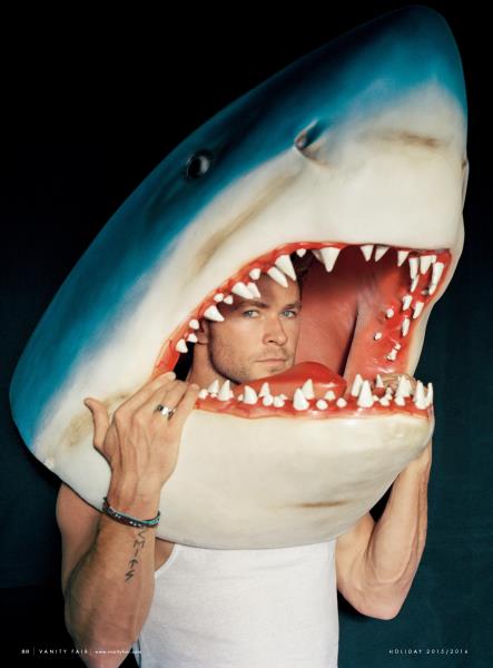 So Hemsworth's a model of decency and modesty and good humor in a context in which those virtues barely stand a chance. But—and I hate even to suggest it, curse my forked tongue, etc.—could these very virtues be what are holding him back? Which is another way of asking, Is Chris Hemsworth really a movie star? The answer to the question is, on the one hand: Hell yeah, he's a movie star! He's part of three highly profitable franchises; works with top-of-the-A-List A-List directors; was People's 2014 Sexiest Man Alive; a host with the most on S.N.L. So all the major boxes are checked.