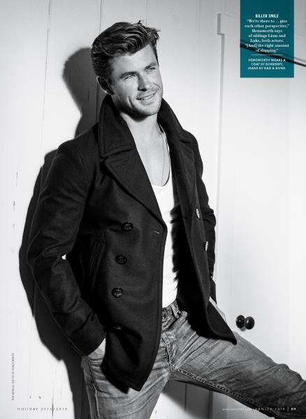 KILLER SMILE "We're there to ... give each other perspective," Hemsworth says of siblings Liam and Luke, both actors. "[And] the right amount of slapping."