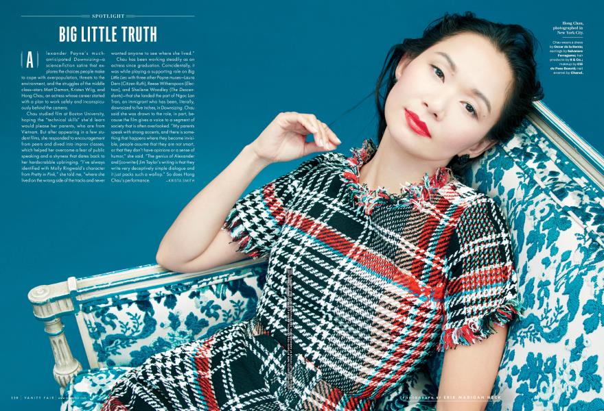 Sign In Not a Subscriber?Join NowAlexander Payne's much-anticipated Downsizing—a science-fiction satire that explores the choices people make to cope with overpopulation, threats to the environment, and the struggles of the middle class—stars Matt Damon, Kristen Wiig, and Hong Chau, an actress whose career started with a plan to work safely and inconspicuously behind the camera.
