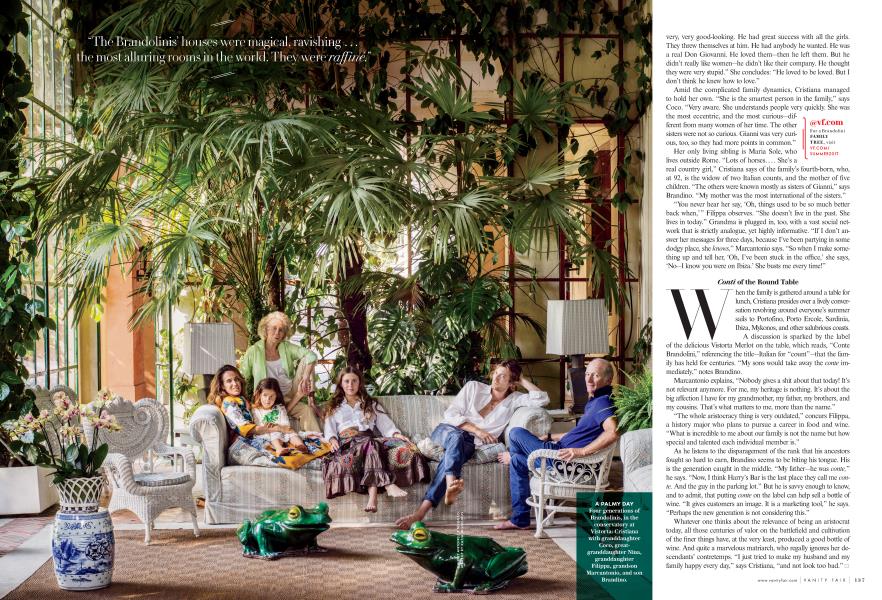 Whatever one thinks about the relevance of being an aristocrat today, all those centuries of valor on the battlefield and cultivation of the finer things have, at the very least, produced a good bottle of wine. And quite a marvelous matriarch, who regally ignores her descendants' contretemps. "I just tried to make my husband and my family happy every day," says Cristiana, "and not look too bad."
