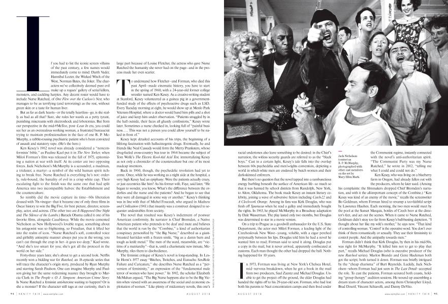 August 2018 Michael SchulmanIf you had to list the iconic screen villains of the past century, a few names would immediately come to mind: Darth Vader, Hannibal Lecter, the Wicked Witch of the West, Norman Bates, the Joker. The characters we've collectively deemed pure evil up a rogues' gallery of serial killers, monsters, and cackling harpies. Any decent roster would have to include Nurse Ratched, of One Flew over the Cuckoo's Nest, who manages to be as terrifying (and terrorizing) as the rest, without green skin or a taste for human liver.