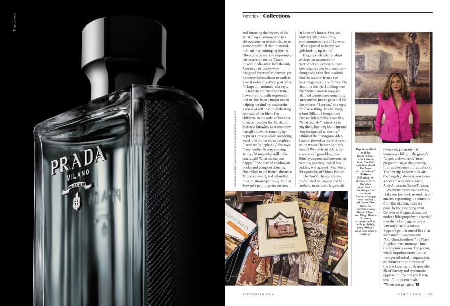 Lawson long believed she'd never leave Galveston, but when she was 14, a female friend took her to Houston to see the Alvin Ailey dance company. "I saw those dancers and all those well-dressed black folks," she says, "it made me want to get out of my little town and have a bigger world." Half a decade later, during a year-long stint in Los Angeles pursuing a career as a makeup artist, she made her first big art purchase—a $500 abstract painting from a furniture store. "It was probably a reproduction, but it was so beautiful and it was in a frame. I discovered then how important [art] is for your home. It made me feel good every day."