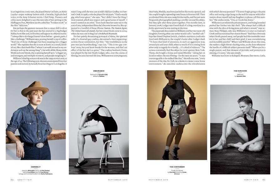 Now, more than a decade after Ledger's death, with her career advancing in surprising new directions and her daughter entering seventh grade, Williams is inhabiting, quite intentionally, a larger, less rarefied, more vocal and open version of herself. For example, this very circumspect person was unwittingly made the poster child for pay inequity—an issue that affects women in every industry—and despite her native discomfort, she's trying to make the most of her platform. "It's a very hard thing for me to navigate," she says, "because my instinct is to keep my life very, very private. But I also need and want certain things out of my career that demand I assume a more public voice."